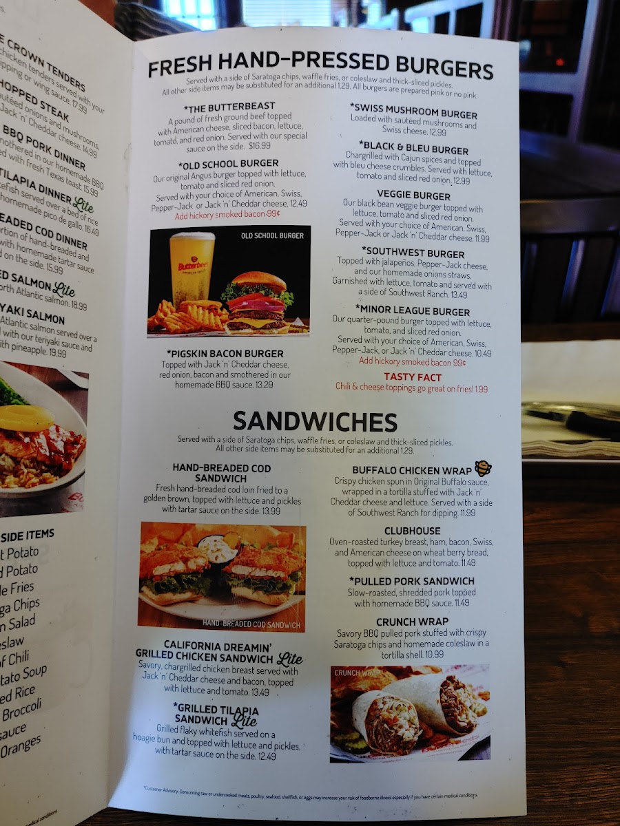 Butterbee's American Grille Menu